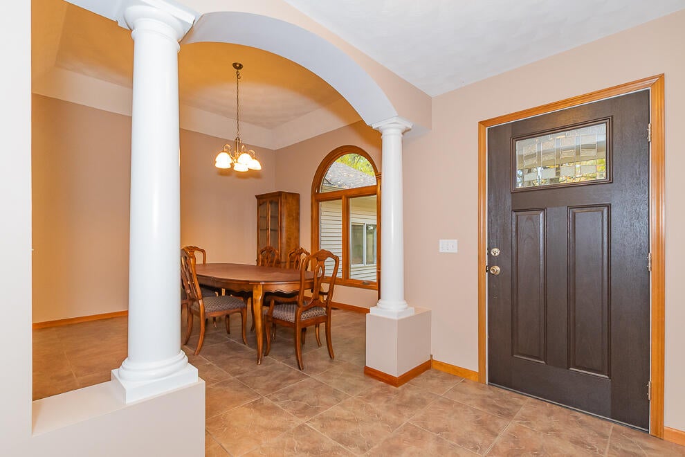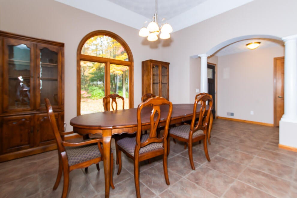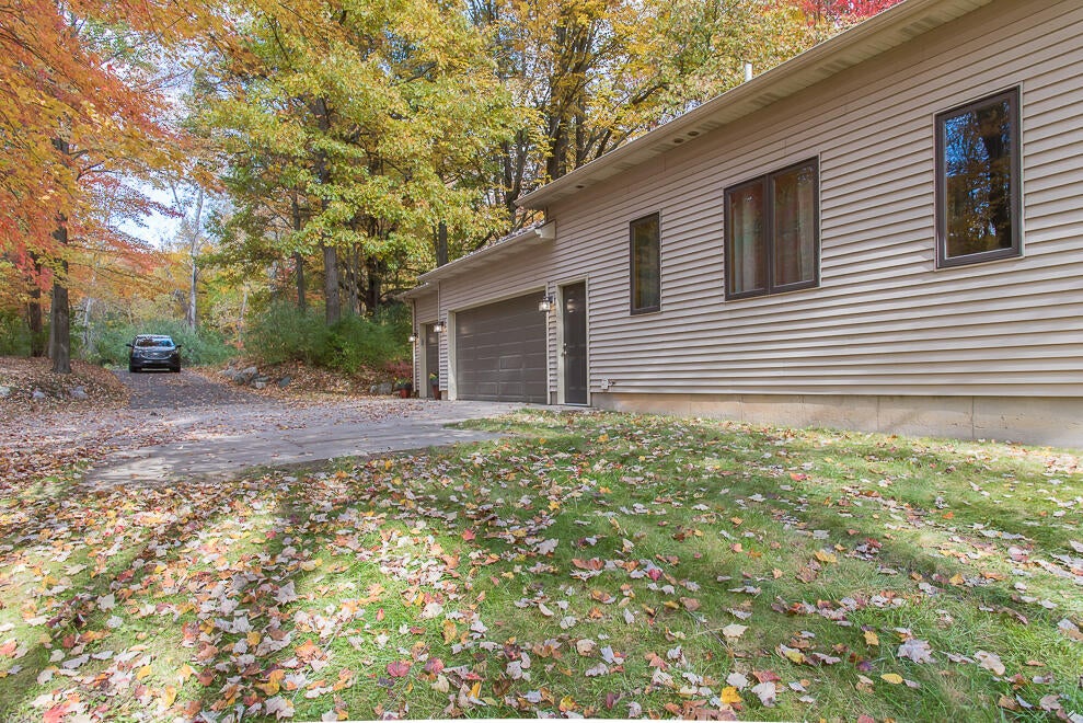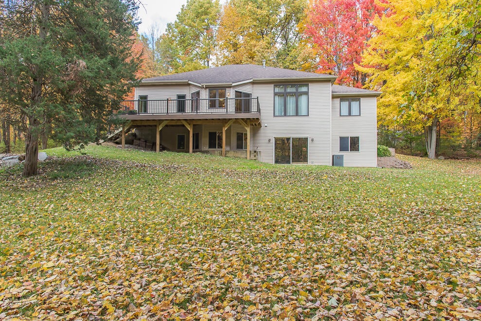 Looking for a great location and beautiful setting? This spacious walkout ranch on two lots has many appealing amenities. As you enter there is an arched doorway with columns to dining room. The spacious kitchen boasts an island, snack bar, desk, eating area and sliders to large deck. There is 10 ft. ceiling in living room with gas log fireplace. 3 bedrooms, 2 full baths, main floor laundry. The lower walk out level has 9’ ceilings with 125 sq. ft. finished work room and huge area ready to be finished-Plumbed for bath. 3 car attached garage. Furnace and AC replaced in 2021. Replacement windows.