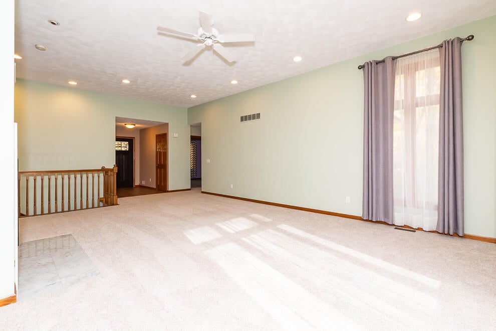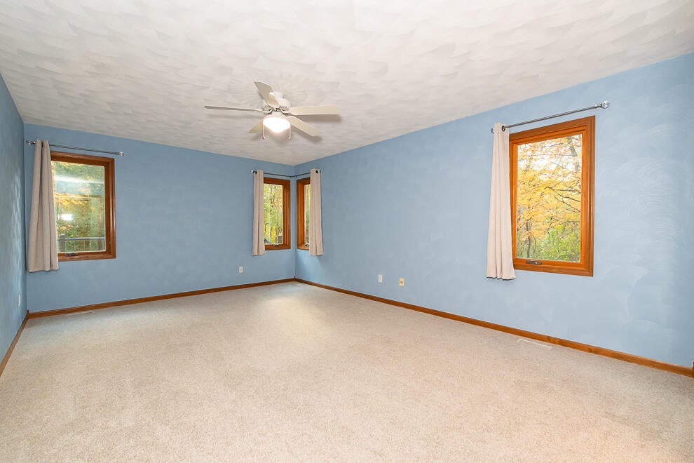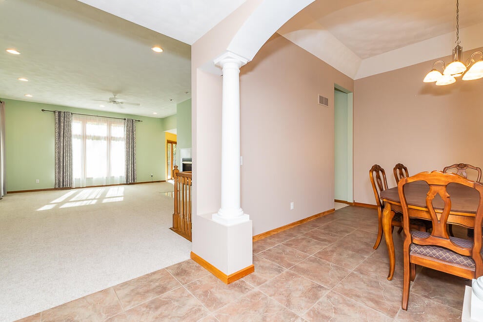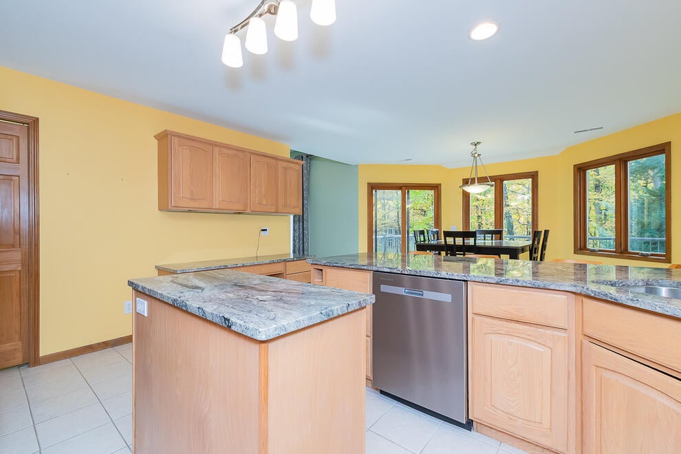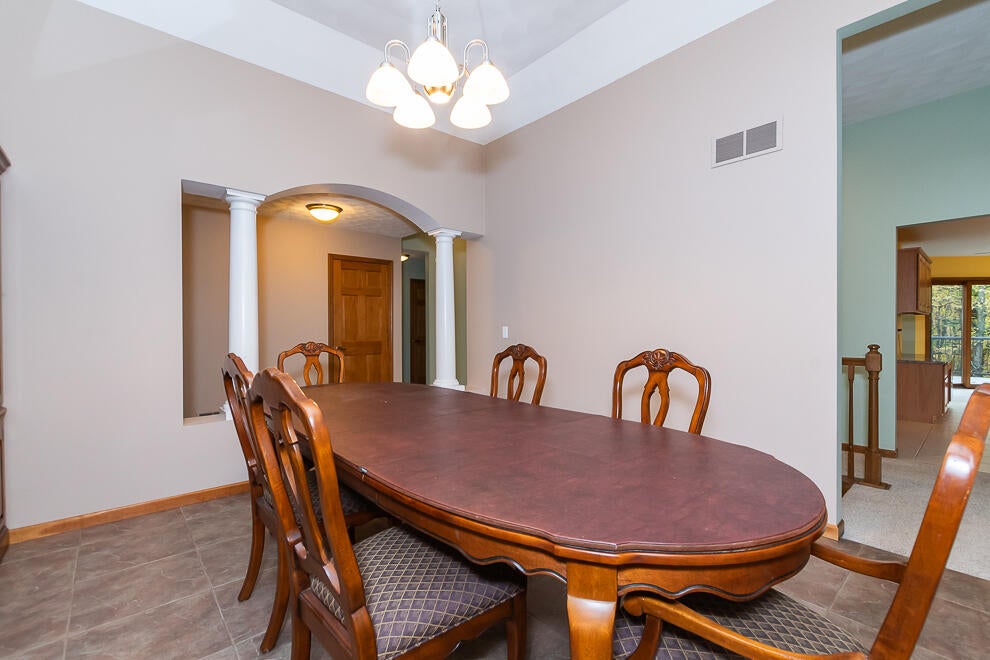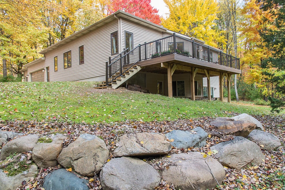 Looking for a great location and beautiful setting? This spacious walkout ranch on two lots has many appealing amenities. As you enter there is an arched doorway with columns to dining room. The spacious kitchen boasts an island, snack bar, desk, eating area and sliders to large deck. There is 10 ft. ceiling in living room with gas log fireplace. 3 bedrooms, 2 full baths, main floor laundry. The lower walk out level has 9’ ceilings with 125 sq. ft. finished work room and huge area ready to be finished-Plumbed for bath. 3 car attached garage. Furnace and AC replaced in 2021. Replacement windows.